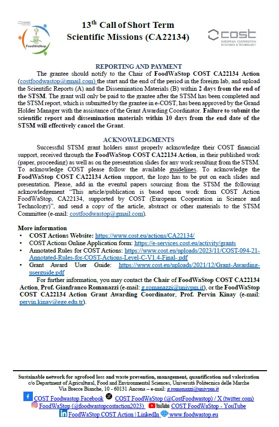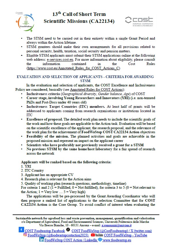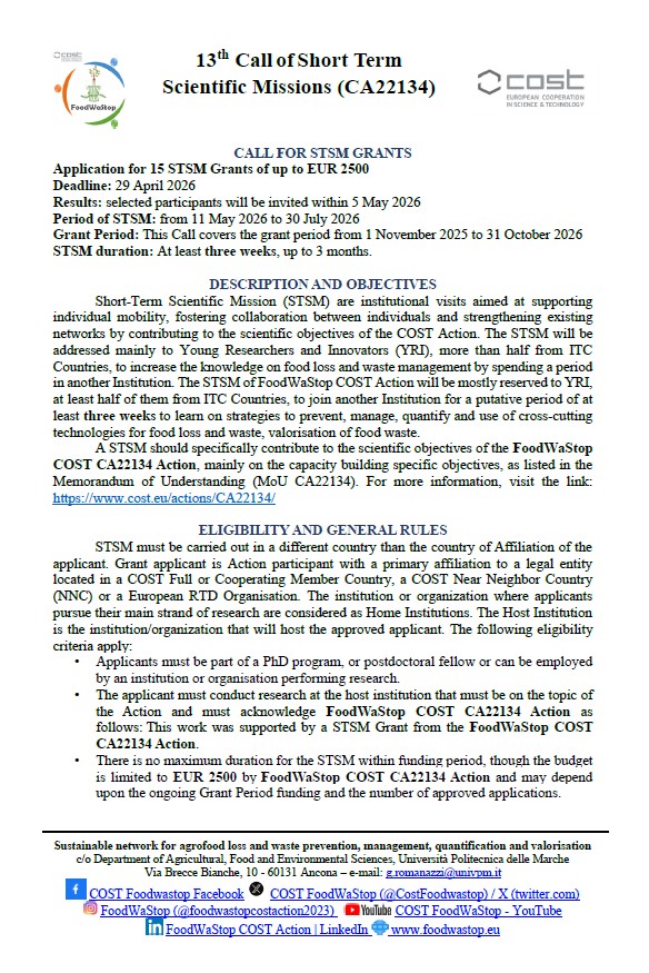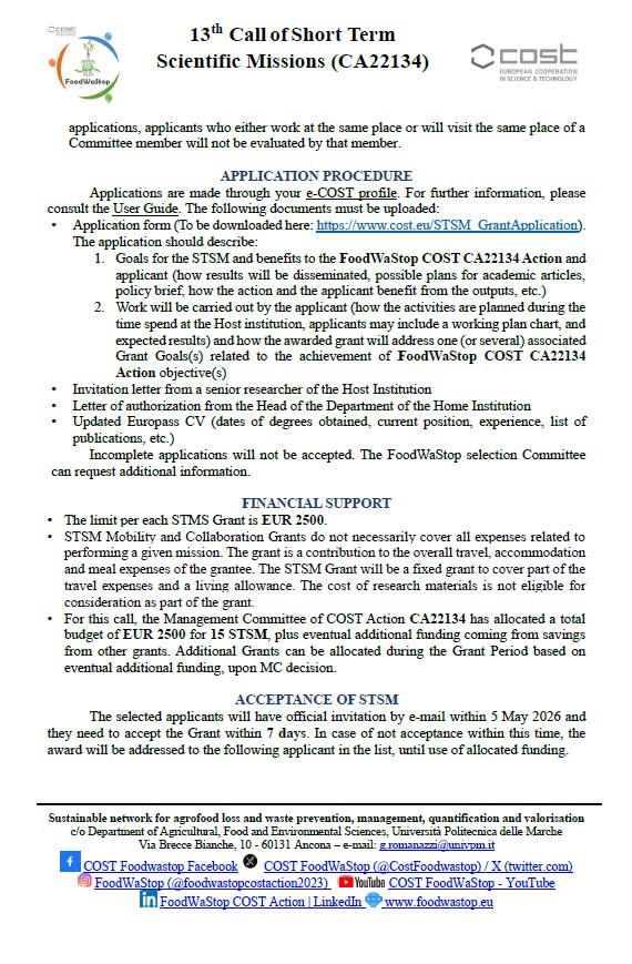 13th Call of Short TermScientific Missions (CA22134)